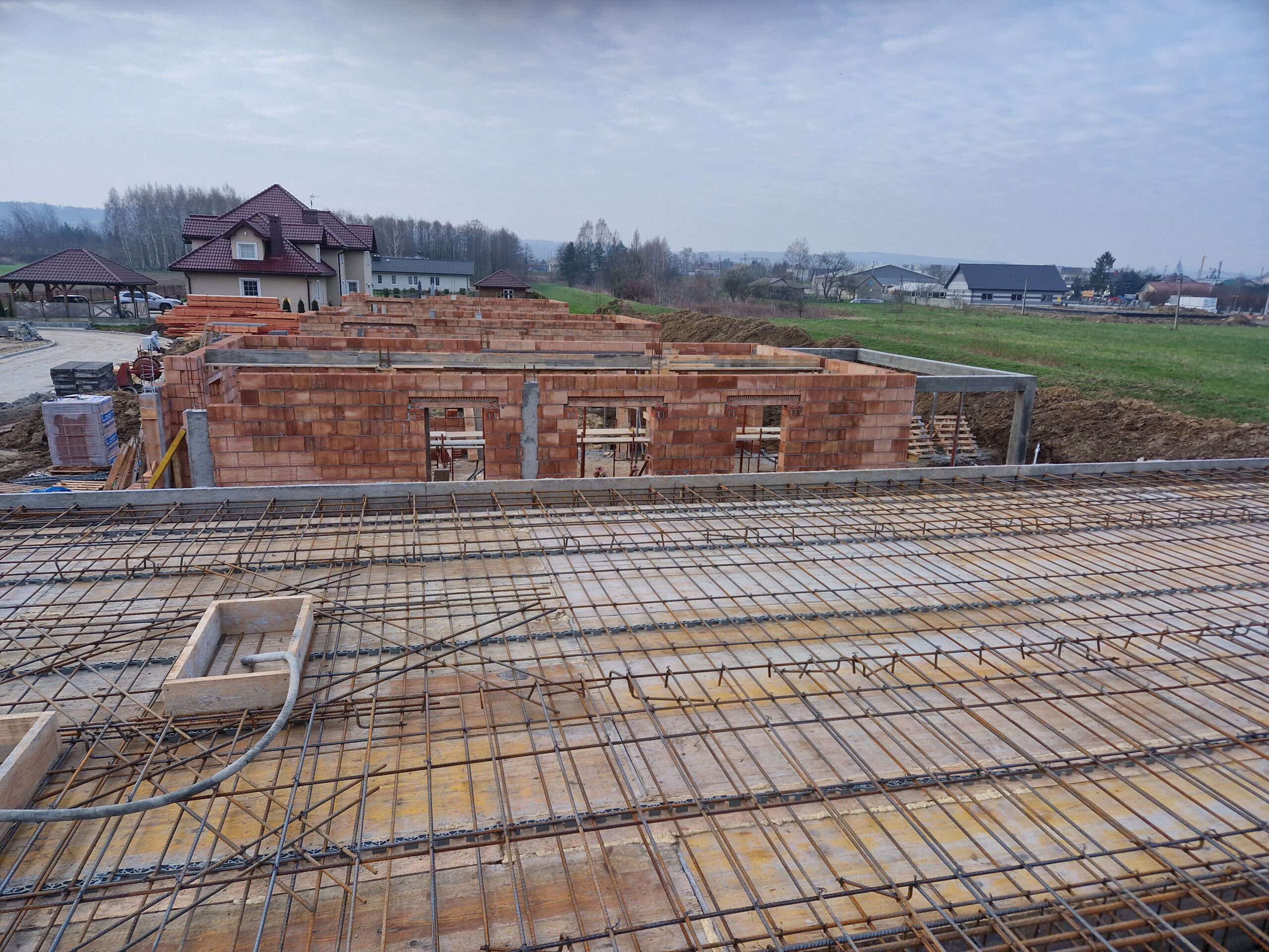 Wykonane żelbetowe słupy i podciągi dla stabilności konstrukcji.